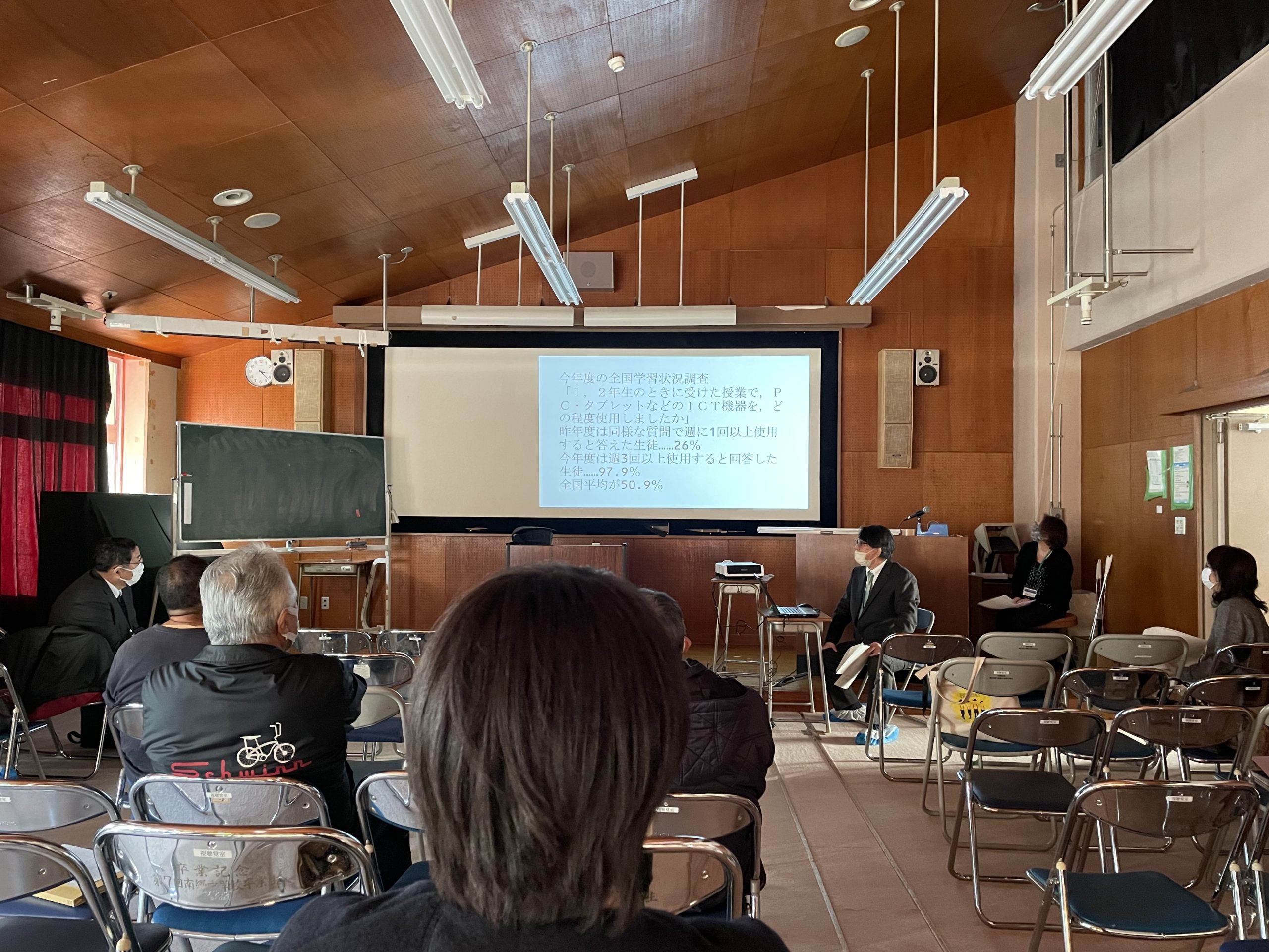 学校の運営方針や、1学期からの両校の活動の様子、そして学校運営協議会のHP(ホームページ)や、活動の概要等が紹介されました。久々の開催であり、依然としてコロナが流行する中での開催のため、欠席される方も少なくはなかったですが、情報交換が進んだり、長柄小学校入口の交通規制の変更要請といった話題を一同で共有することができました。
