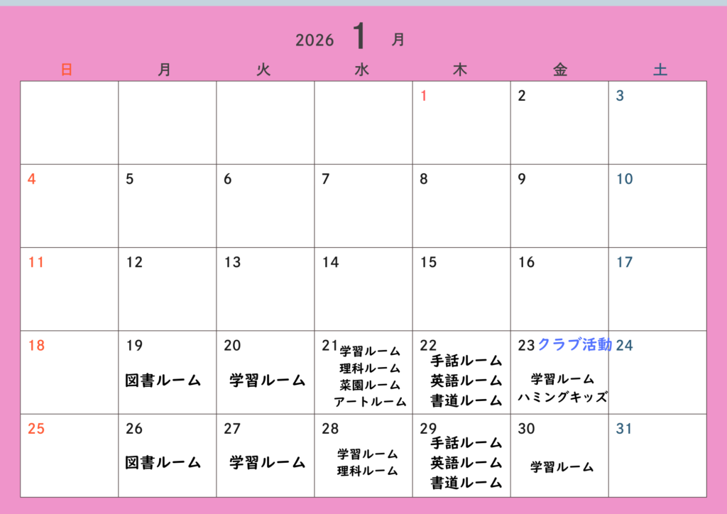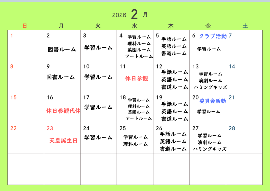 委員会、クラブのある日の学習ルームは