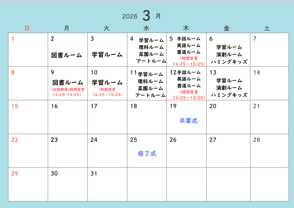 【放課後ルーム第3期 日程表】