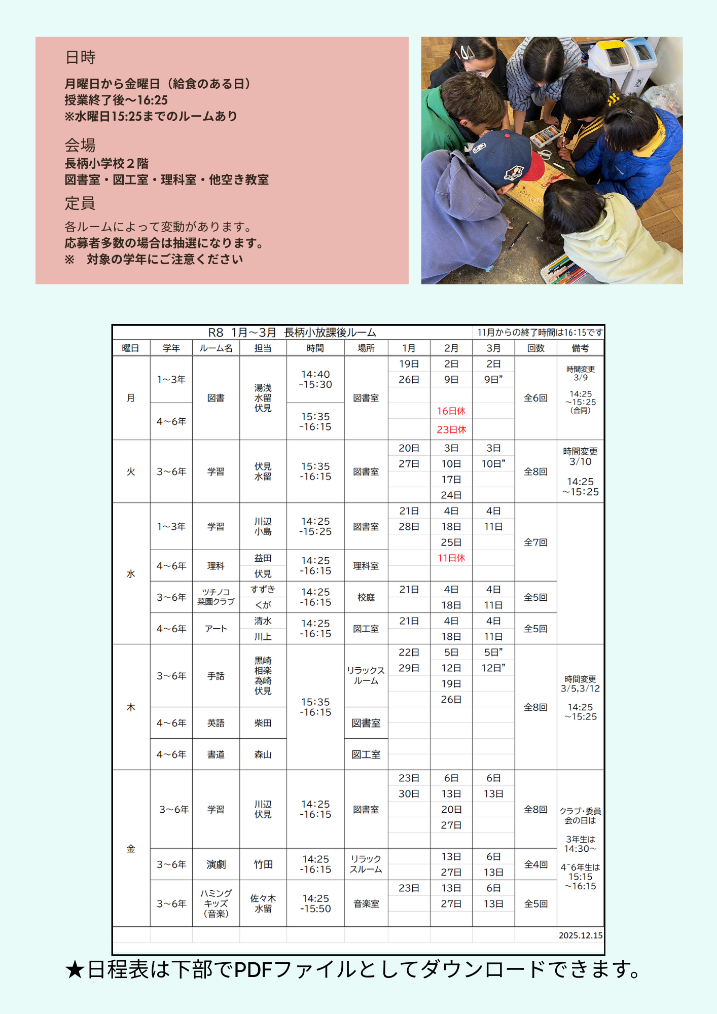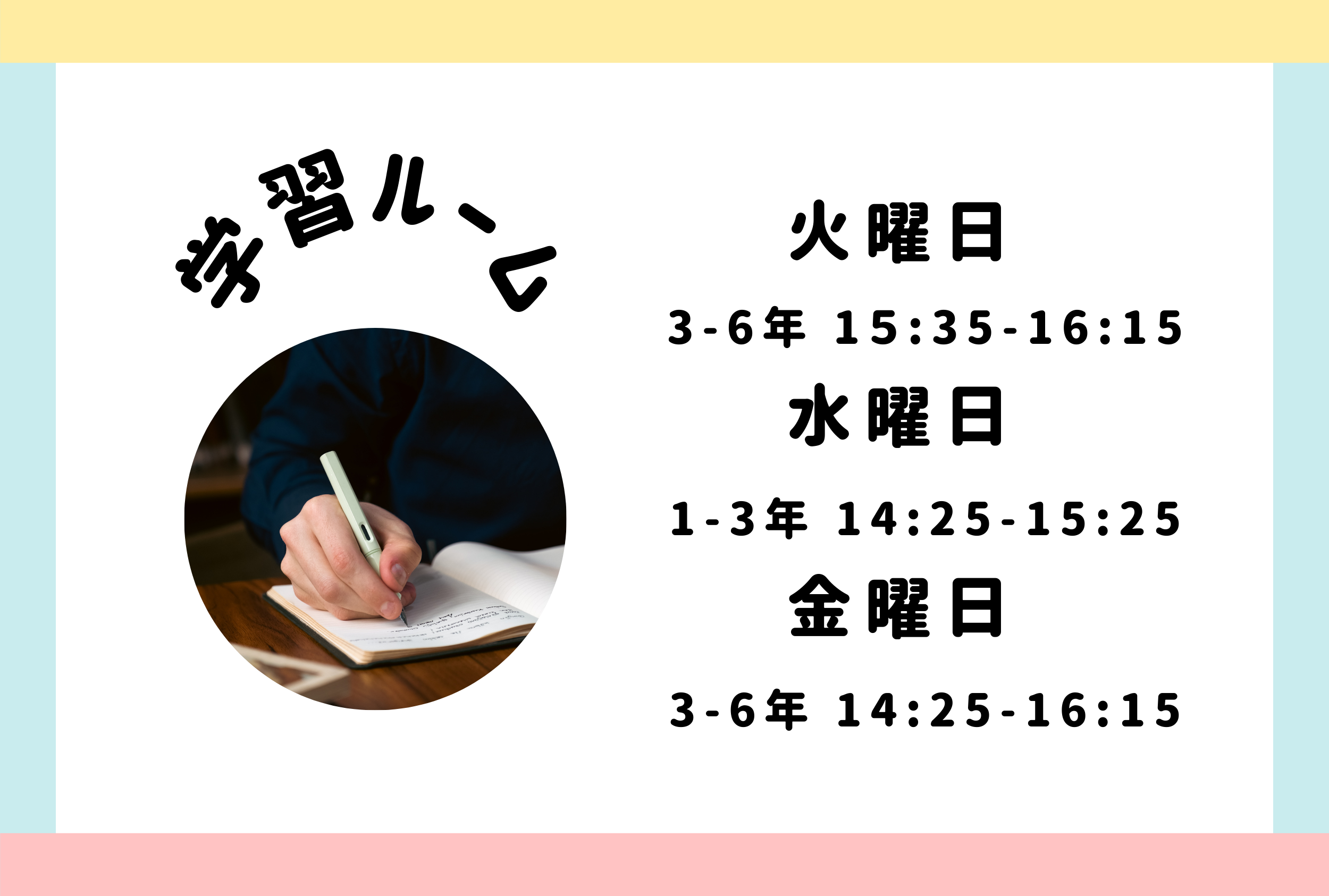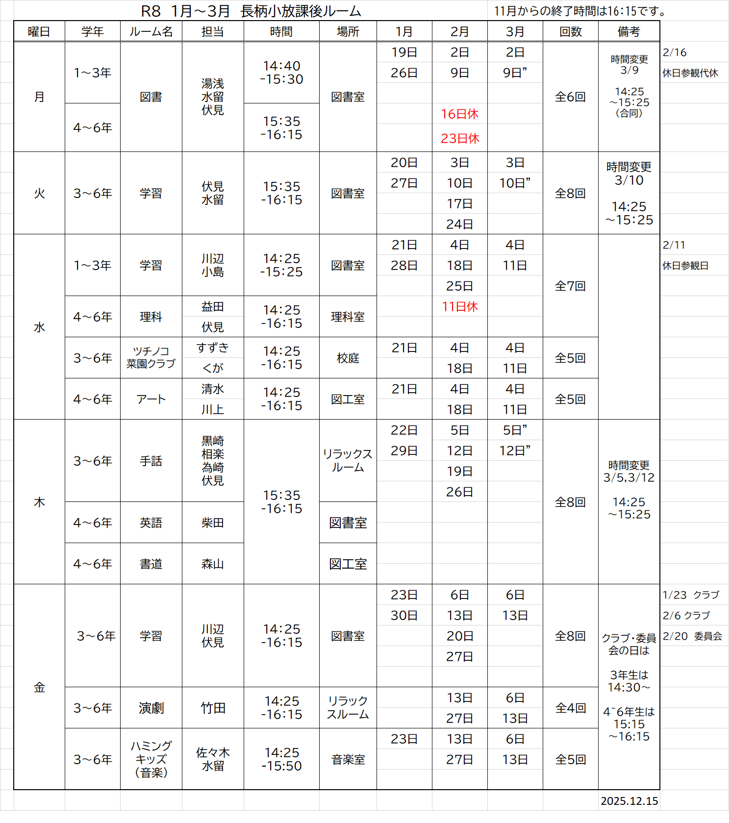 4~6年生は、15:15~16:15 になります。